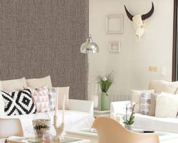 การแต่งบ้านด้วยวอลเปเปอร์ติดผนังลายเรียบ สีน้ำตาลเข้ม มีลวดลาย สีสัน ดูหรูหรา สวยงาม เหมาะสำหรับหลายคนที่ชื่นชอบการแต่งบ้านแนวเรียบง่าย ดูสบายตา