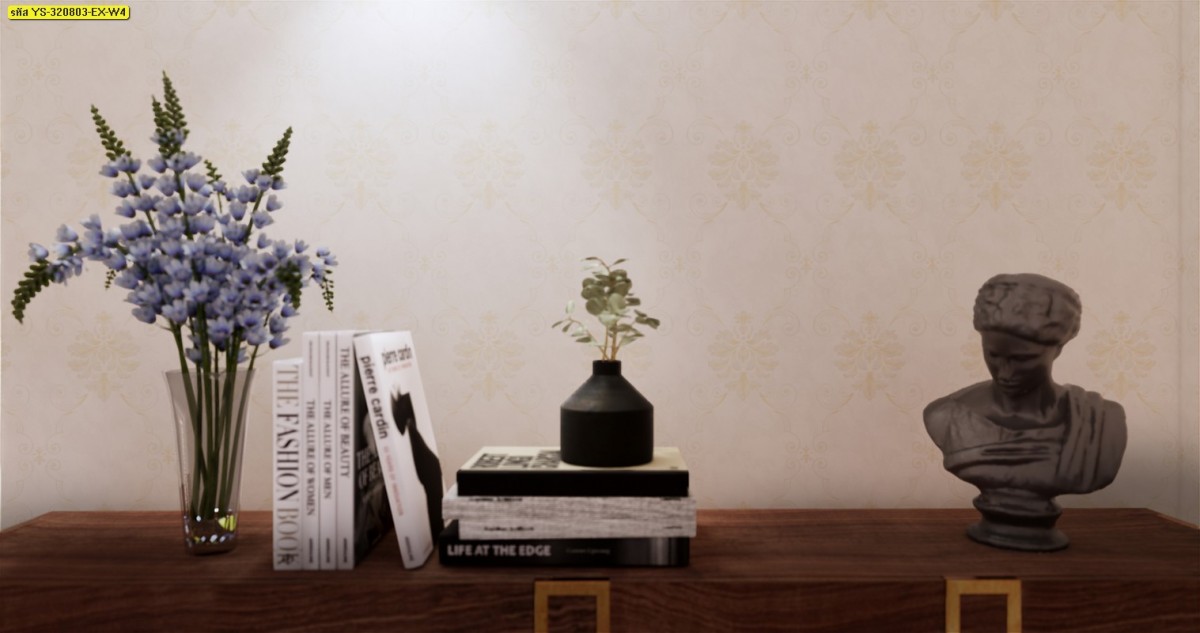 ตกแต่งมุมเล็กๆภายในบ้านให้ดูดีมีสไตล์ด้วยวอลเปเปอร์ลายหลุยส์สีครีม เป็นโทนสีเรียบที่ให้ความรู้สึกโล่ง ผ่อนคลาย และสบายตา ช่วยทำให้พื้นที่ภายในบ้านดูกว้างขึ้น