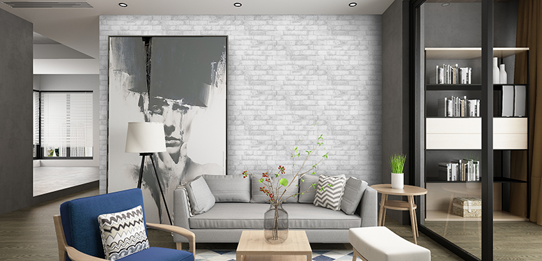 ผนังห้องที่ต้องการความดิบ แบบอินดัสเทรียลอฟท์ กลิ่นอายความเป็นธรรมชาติ สามารถเลือกใช้วอลเปเปอร์ติดผนังลวดลายอิฐเรียว สีน้ำตาลปนสีขาว