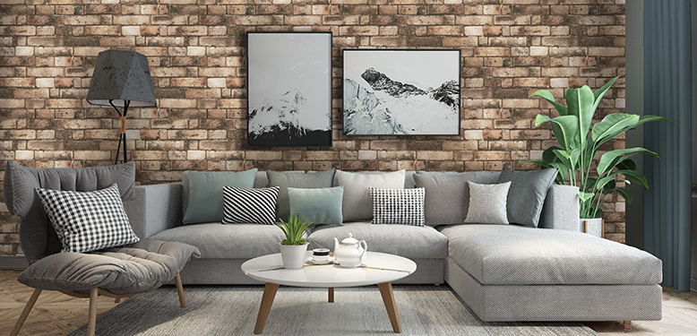 ปรับเปลี่ยนผนังภายในห้อง พื้นเรียบธรรมดาๆ ให้กลายเป็นผนังห้องที่มีสีสัน และบ่งบอกสไตล์เท่ห์ๆ ที่ดูแปลกใหม่ทันสมัย ด้วยวอลเปเปอร์ติดผนังลวดลายอิฐ สีเทา