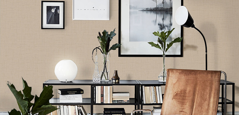 วอลเปเปอร์ติดผนังลายเรียบ สีน้ำตาลอ่อน ลวดลายและสีสันเรียบหรู สไตล์โมเดิร์น ช่วยตกแต่งให้ภายในบ้านดูผ่อนคลาย อบอุ่น