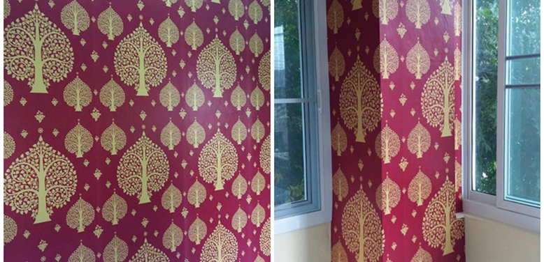 วอลเปเปอร์ลายต้นโพธิ์ สีแดง ลายไทย เป็นการแสดงศิลปะอีกอย่างหนึ่งที่สื่อถึงความเป็นไทย เหมาะสำหรับตกแต่งห้องพระ วัด โบสถ์