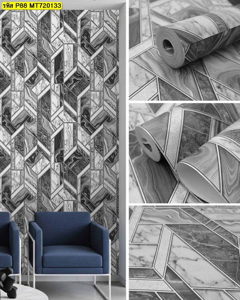 วอลเปเปอร์ติดผนังลายกราฟิกแถบขาวสลับเทา รหัส P88-MT720133
