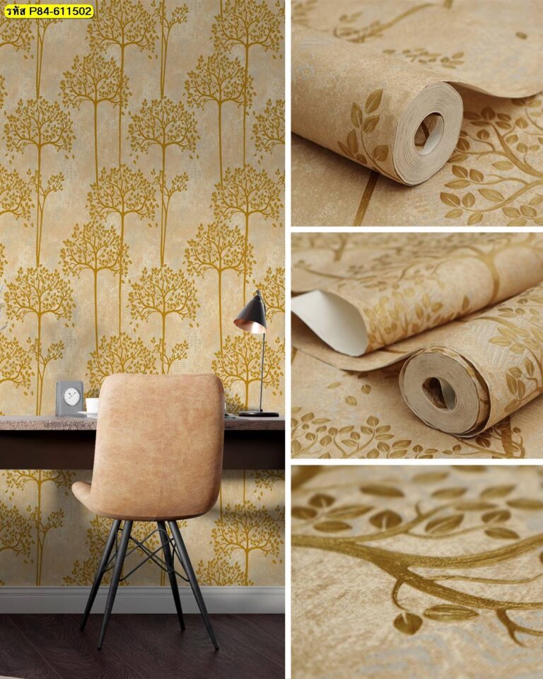 แนะนำสำหรับคนชอบตกแต่งบ้าน เบื่อผนังเดิมๆเมื่อไหร่ก็สามารถเปลี่ยนใหม่ได้ทุกเมื่อ เพียงติดตั้งวอลเปเปอร์ม้วนลายต้นไม้สีทองสำหรับติดผนัง ลอกง่าย ติดตั้งง่าย อายุการใช้งานคงทน