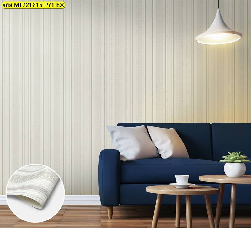 วอลเปเปอร์ติดผนังลายทางสีครีมสลับเทา รหัส P71-MT721215